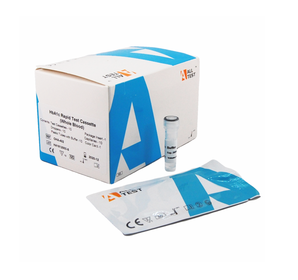 • The ALLTEST HbA1c glycosylated haemoglobin rapid blood test kit can detect normal samples in 10 minutes